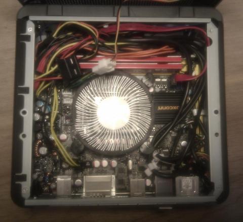 Antec ISK-100は、なかなか手ごわそうでしたが、割とすんなり組むことができました。コツとしてはマザーボードを入れるときバックパネル側と逆側から入れると、すんなり入ります。