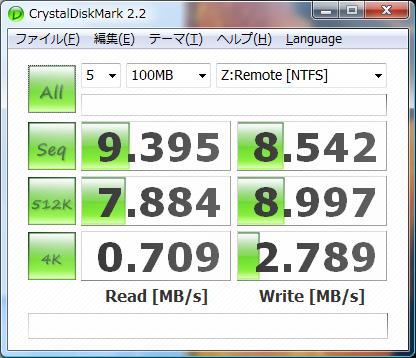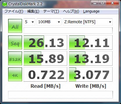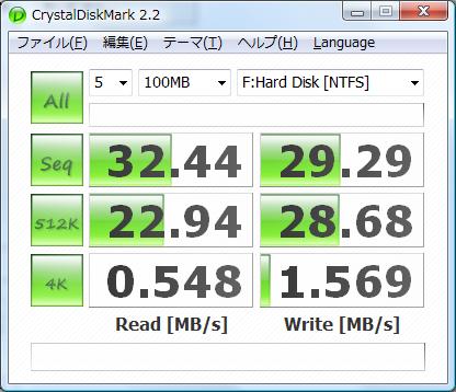 とりあえずCrystalDiskMarkで測定してみました。monte1206さんの結果とほぼ同様です。