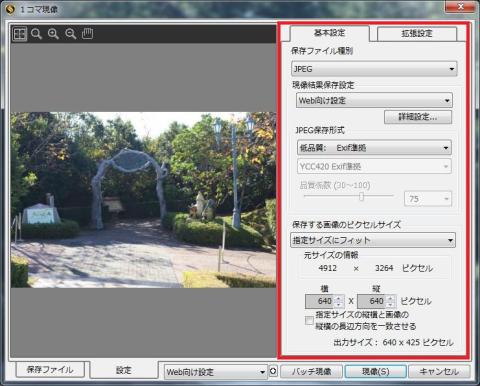 このソフトでは、「JPEG保存」が、「1コマ現像」となるようです。
