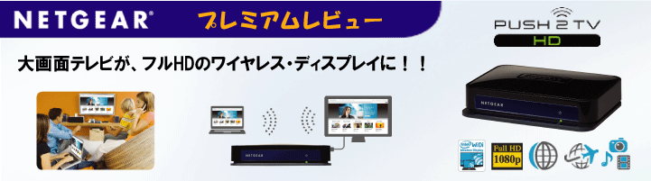 NETGEARは、他社に先駆けて2010年11月に発売した「Push2TV」に続き、フルHD(1080p)、デュアルバンド(2.4GHz/5GHz)に対応した「Push2TV HD」をラインナップに追加しました。よりスムーズに、よりきれいな映像をご覧いただけます。