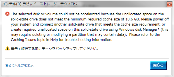 システムの管理から記憶域のボリュームを削除して、再び挑戦