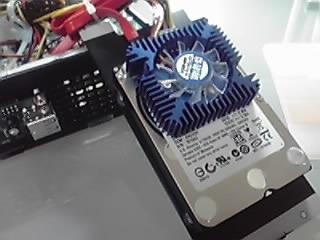 ハードディスクにVGAチップ用クーラー(ヒートシンク+ファン)を取り付けて