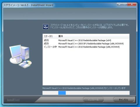 ステライメージ6.5のインストール用に必要なランタイムファイル(Microsoft Visual C++ Redistributable Packageなど)がコピーされます。