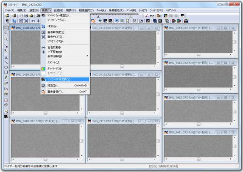 次に、画像メニューから ベイヤー・RGB変換 を選択します。