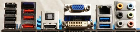 バックパネルにはUSB2.0が6つ、USB3.0が2つ、eSATA、HDMI、VGA、DVI、S/PDIF、1000BASE-Tがそれぞれ1つずつ、7.1chのオーディオ入出力がある。左側上部の赤いUSB端子上部にあるのはBluetooth 2.1のモジュールとなっているが、取り外しなどはできないようになっている。