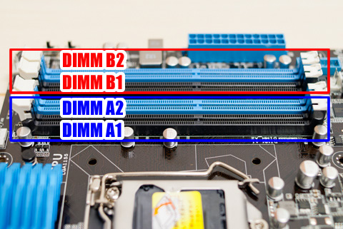 今回はフルに4スロット使用しますが、1枚の場合はDIMM_A2を、2枚の場合はDIMM_A2とDIMM_B2を使用することを推奨されています。