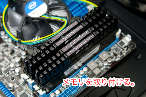 次にCPUクーラーを取り付けますが、今回は、CPU付属のリテールクーラーを使用します。