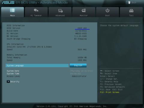 BIOSのバージョンが0402にアップデートされたことを確認します。(青の下線箇所)