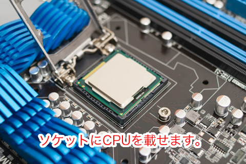 マザーボードのCPUソケットにCPUを取り付けて行きます。