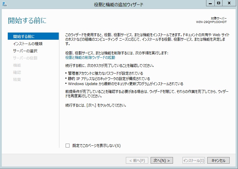 RDP(リモートデスクトップ)は後で設定できるのでこのまま次に進みます。