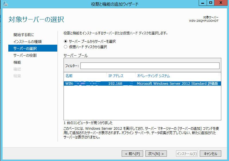 「WindowsServer2012(180日評価版)」をホストに選びました。