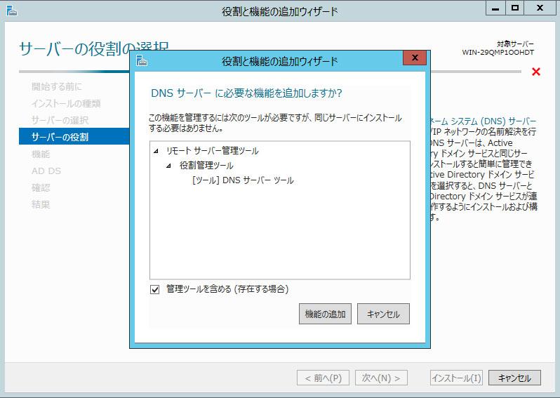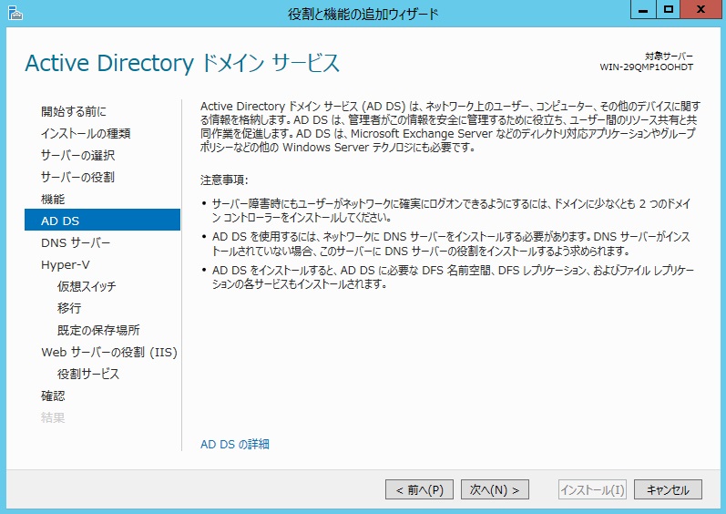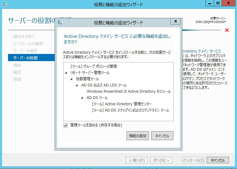 「AD DS」はワンセットなのでとりあえずインストールします。