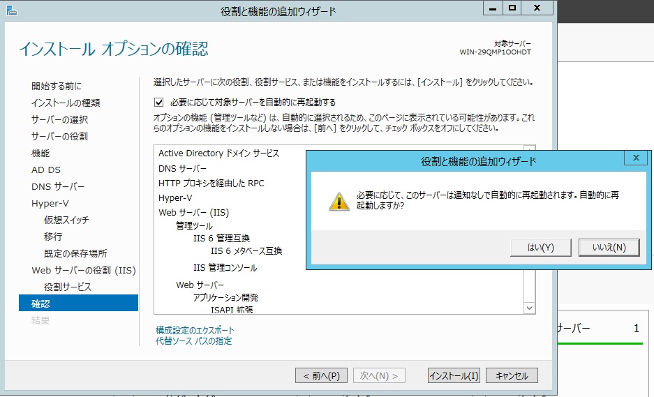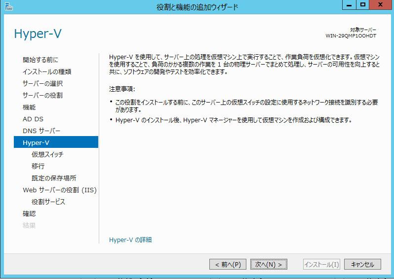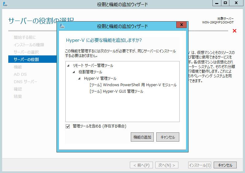 そしてココからが本番。Hyper-Vのインストール。