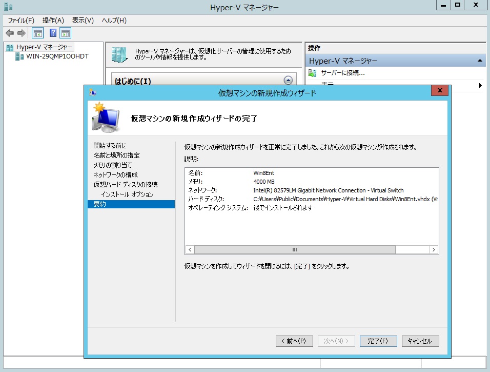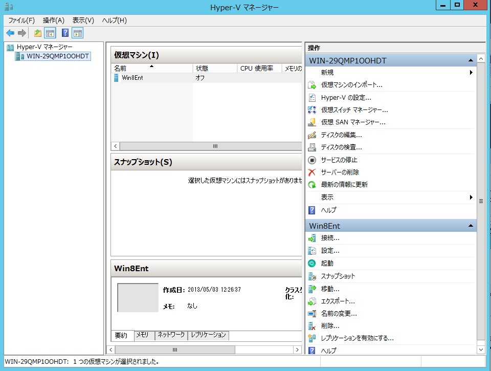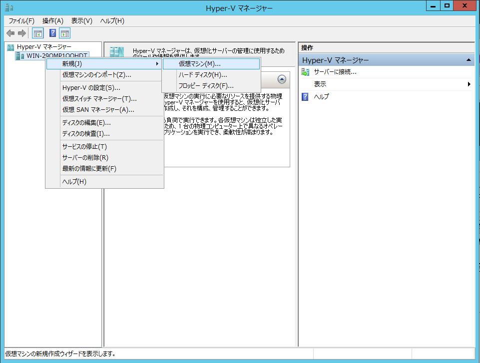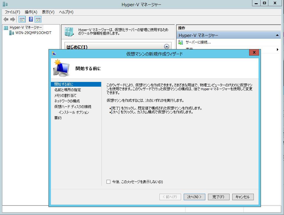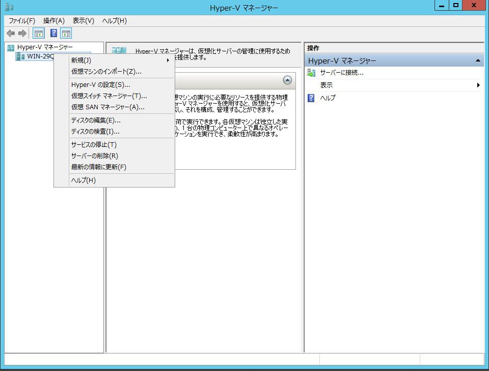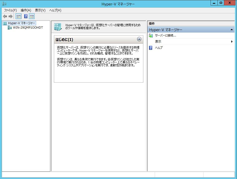終了したらおもむろにHyper-Vマネージャを起動します。