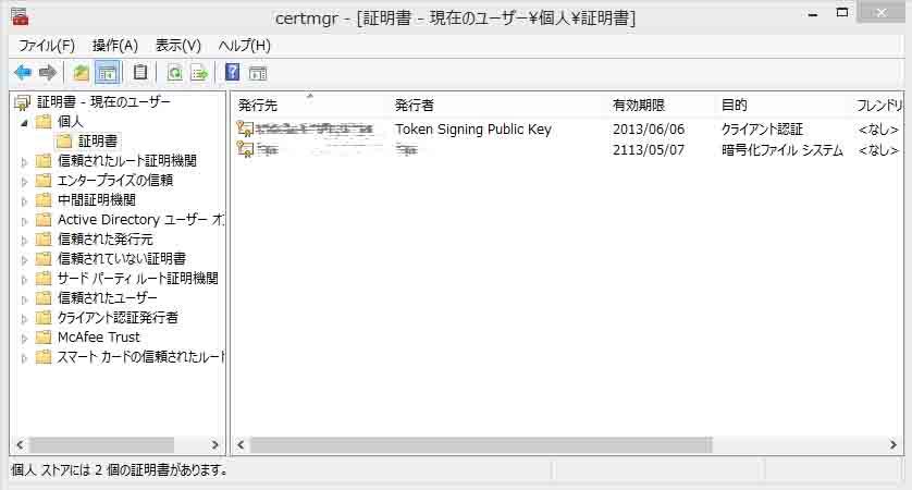 すると「コンピュータ証明書の管理」などという項目が出てきます。