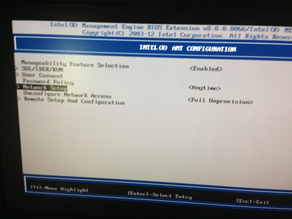 Network SetupでAMT専用のIPネットワークを設定することが出来る。