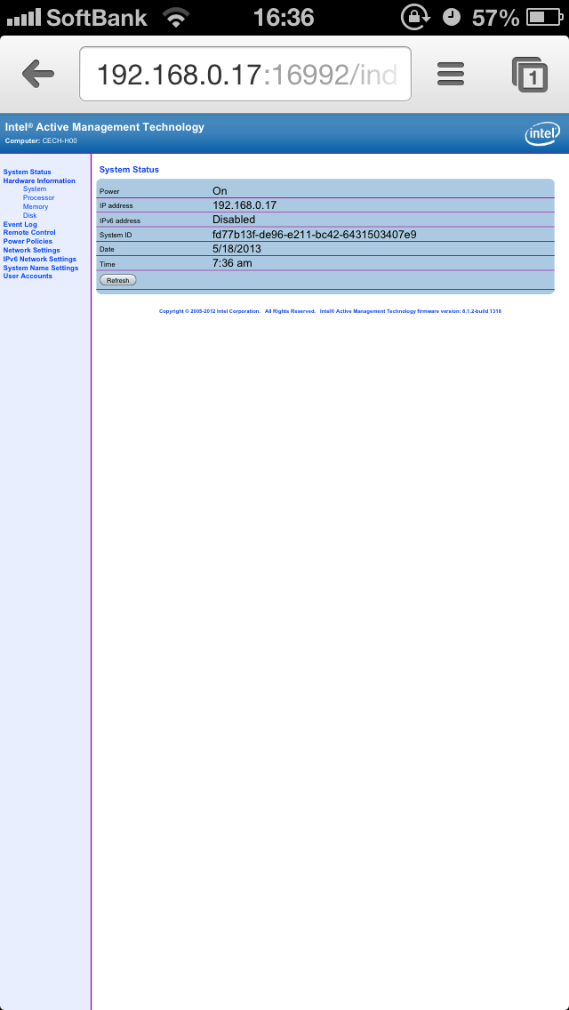WEBブラウザ上で、AMTで設定しておいたIPを使ってアクセス