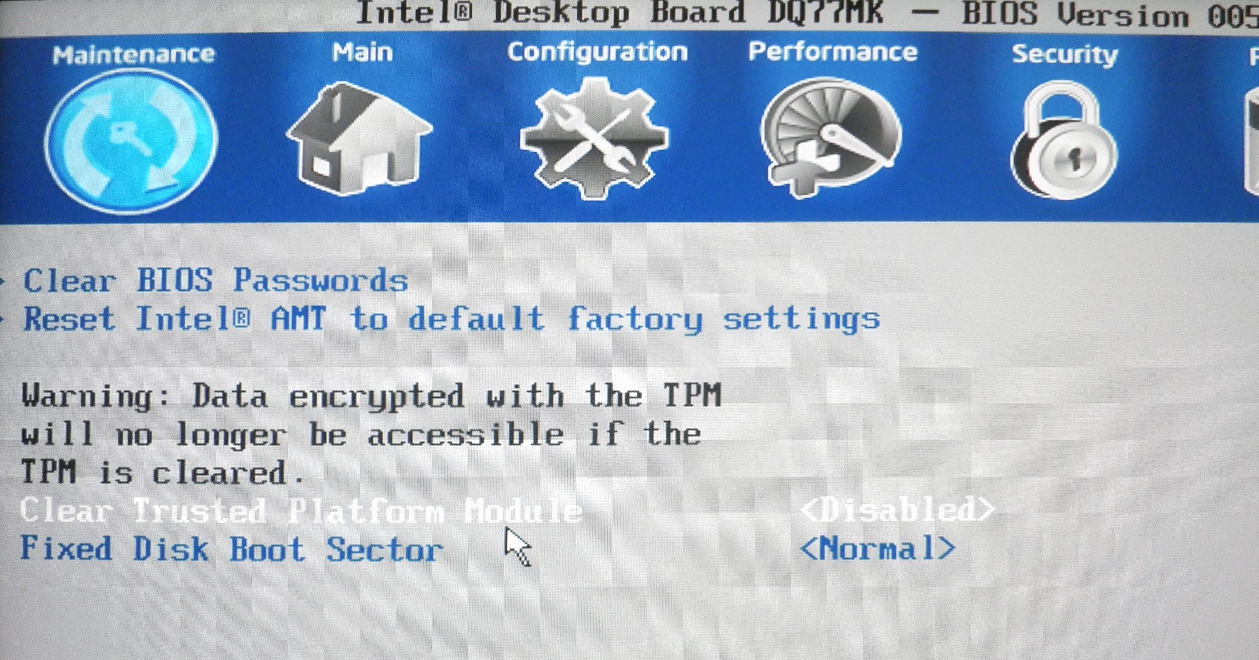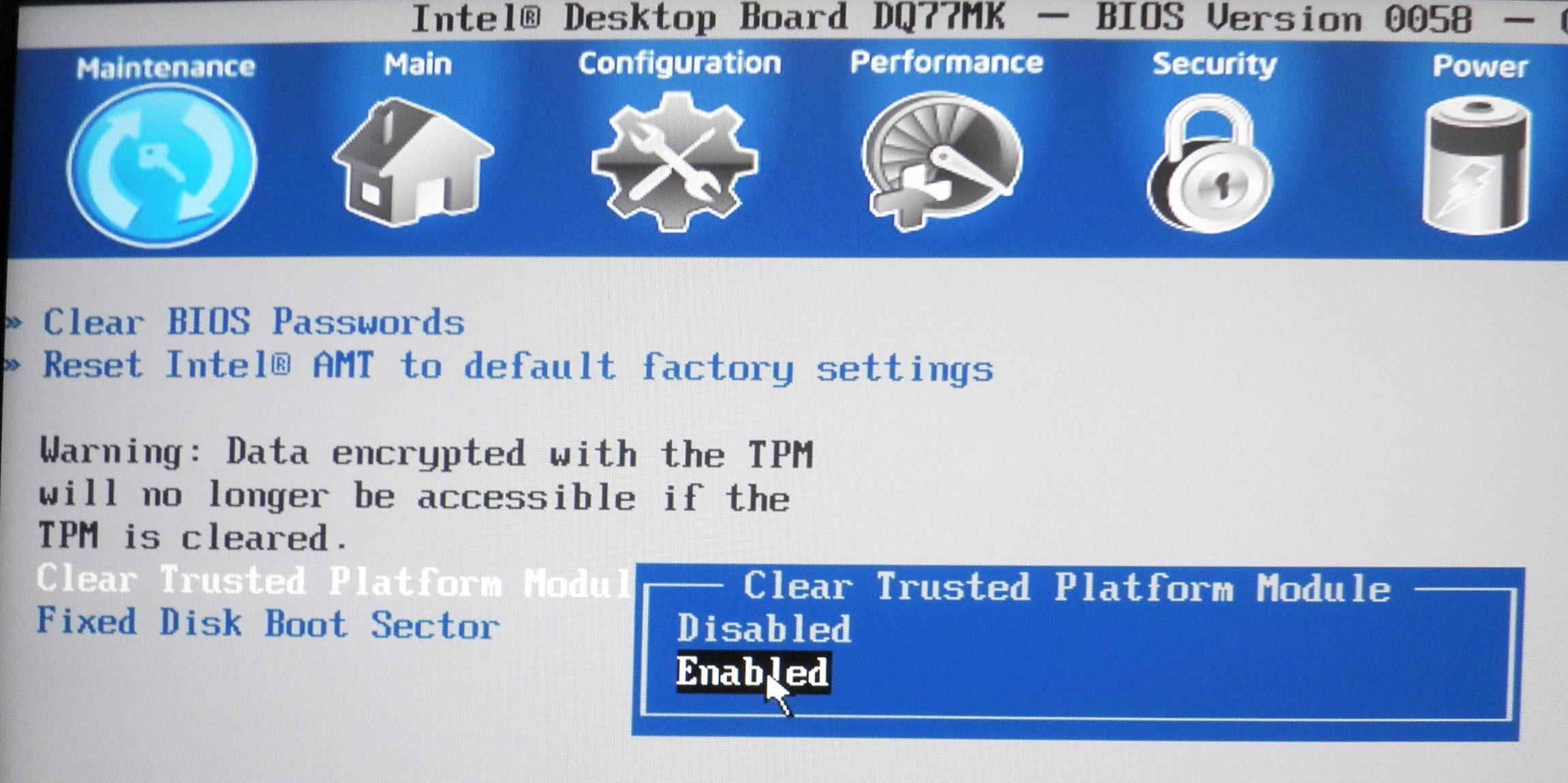 DQ77MKボードのTPM(セキュリティーチップ)の初期化方法