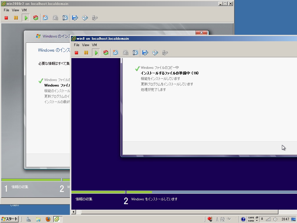 SSDに改装しSSD上にWindows 8、HDD上にWindows Server 2008 R2をインストール中です。