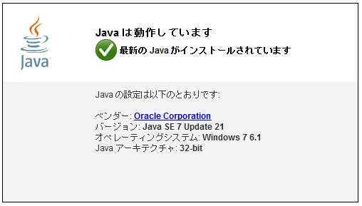 FireFoxでJavaが無効化されているのではと思い確認ページにアクセスしましたが有効化されていてJavaの動作確認ができました。