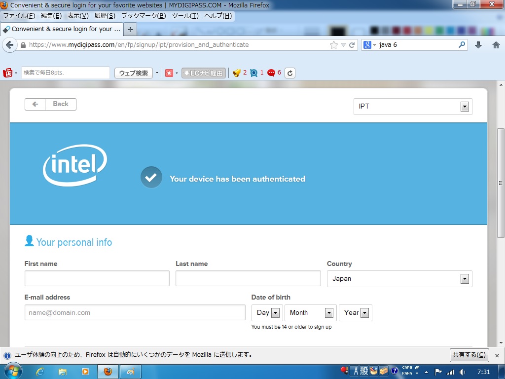 ブラウザをFireFoxからIE10に切り替えて再度挑戦します。