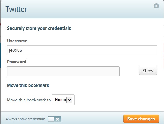 Twitterのユーザーネームとパスワードを入力し保存します。