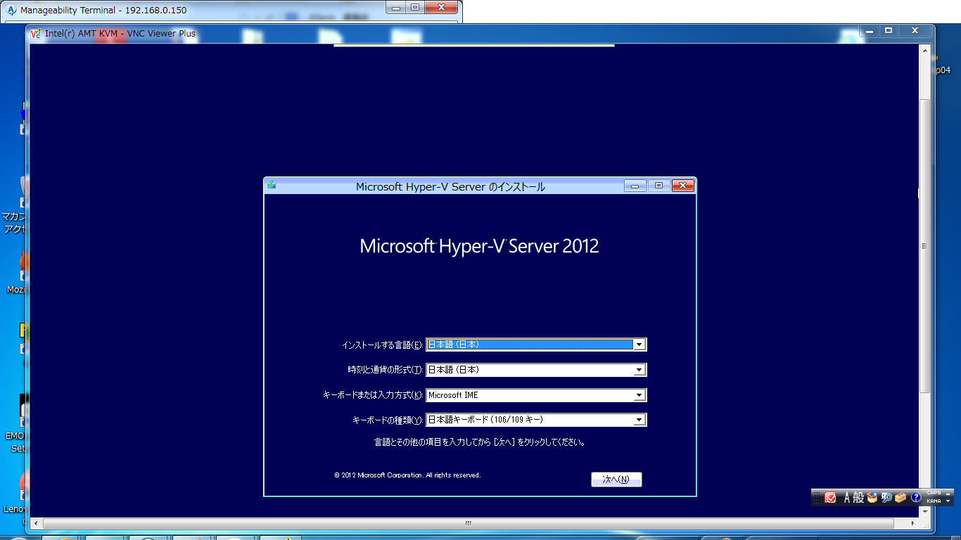 今回はIntel VT-dのテストで使用したWindows Server 2012が入っていたので、そのまま使うことにします。