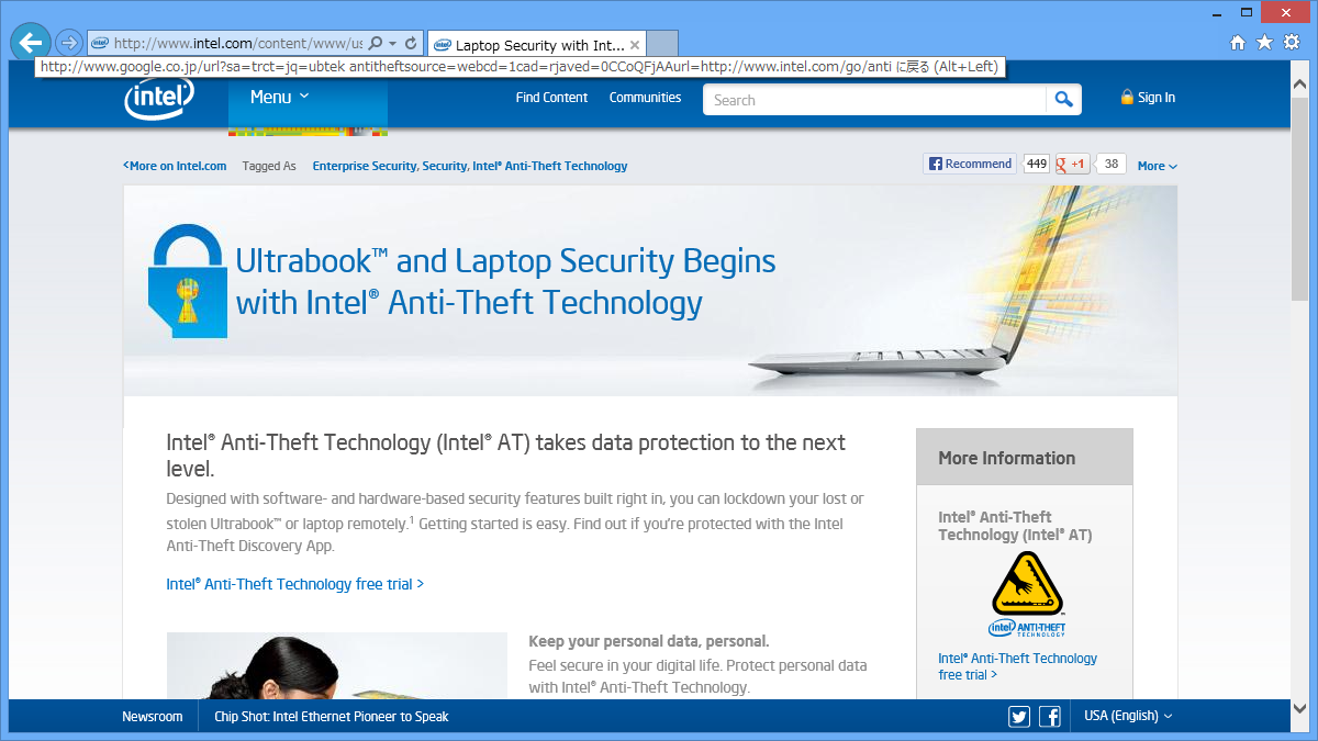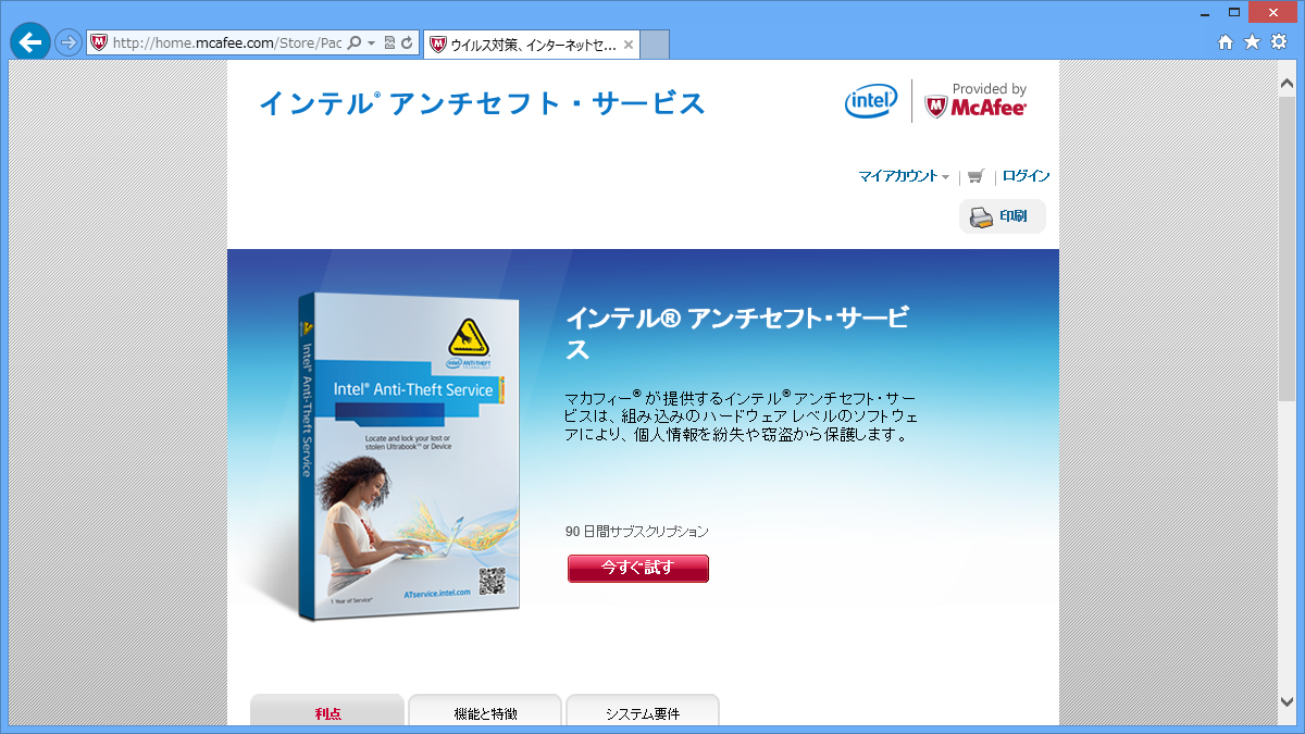 まずはWebブラウザでIntel Anti-Theftの紹介ページを訪れます。