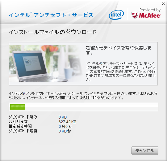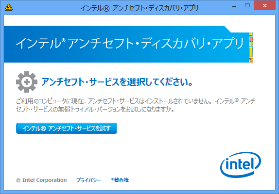 「インテル アンチセフト・サービスを試す」ボタンを押します。