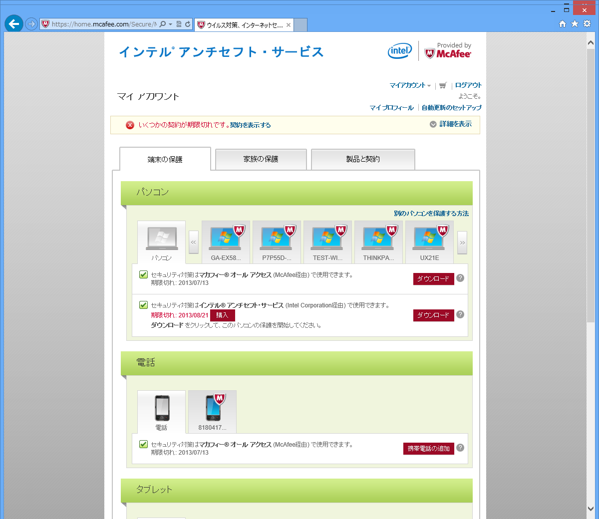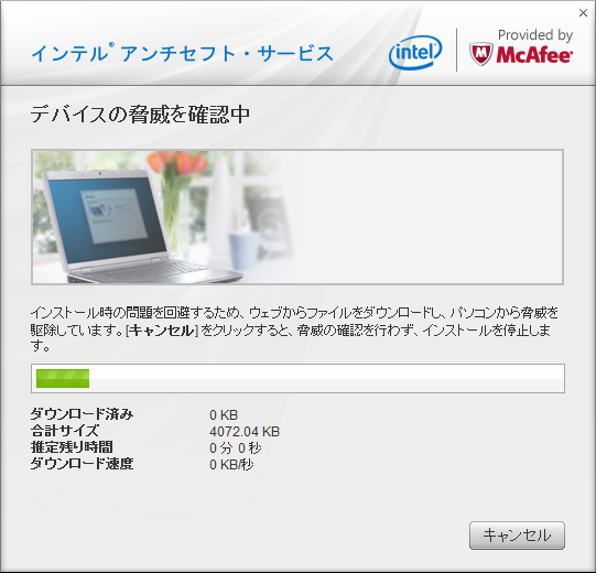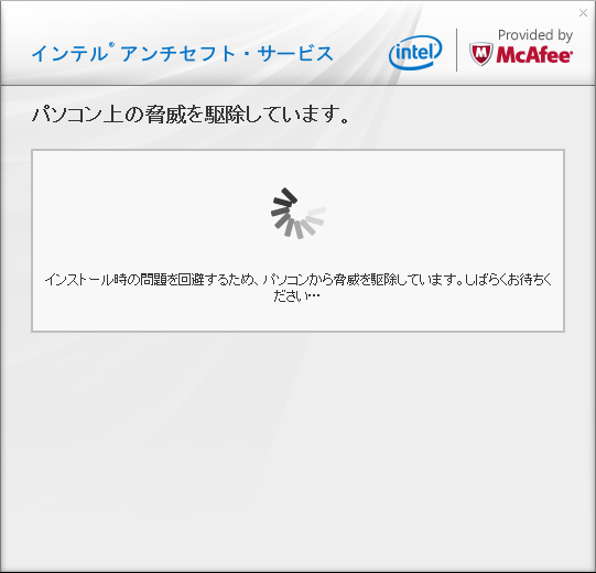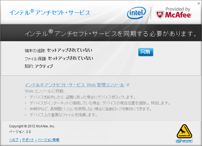 アンチセフトのユーティリティをインストールした後、同期が完了すれば設定の確認と変更ができるのですが、待てど暮らせど同期がされません。アンインストール、再インストールを繰り返してもだめ。IntelのWebに記載されているサポート窓口に連絡しました。