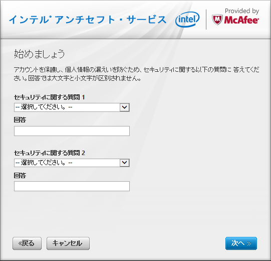 「セキュリティに関する質問」を設定します。設定したら次に進みます。