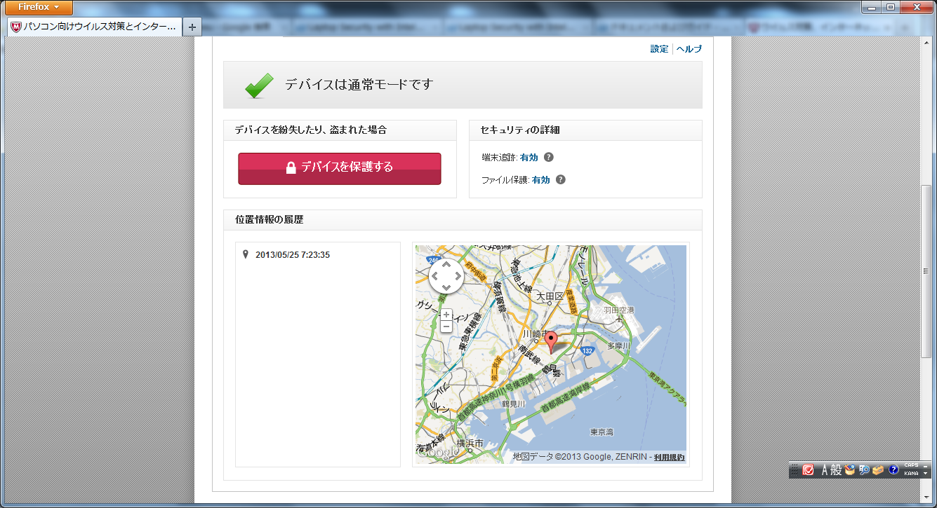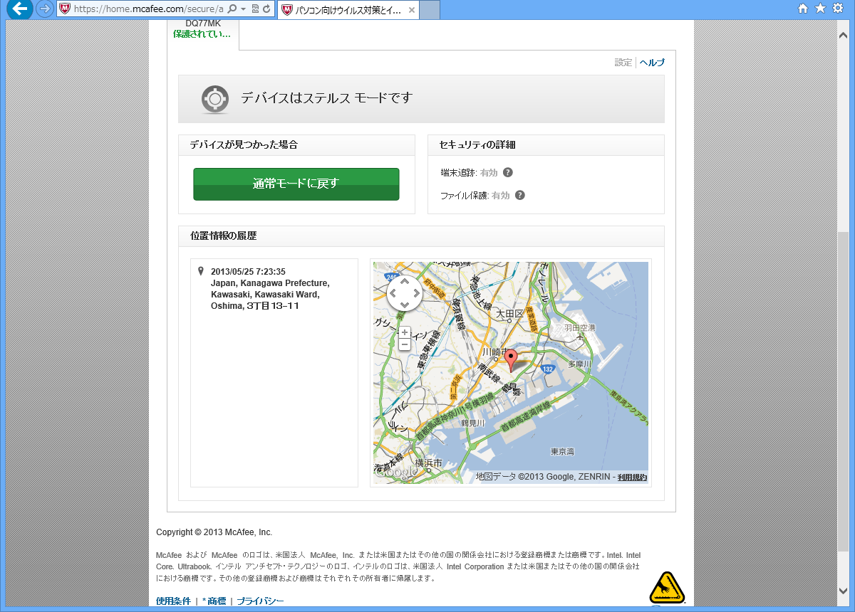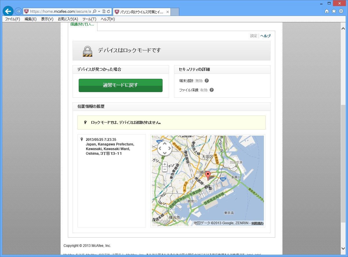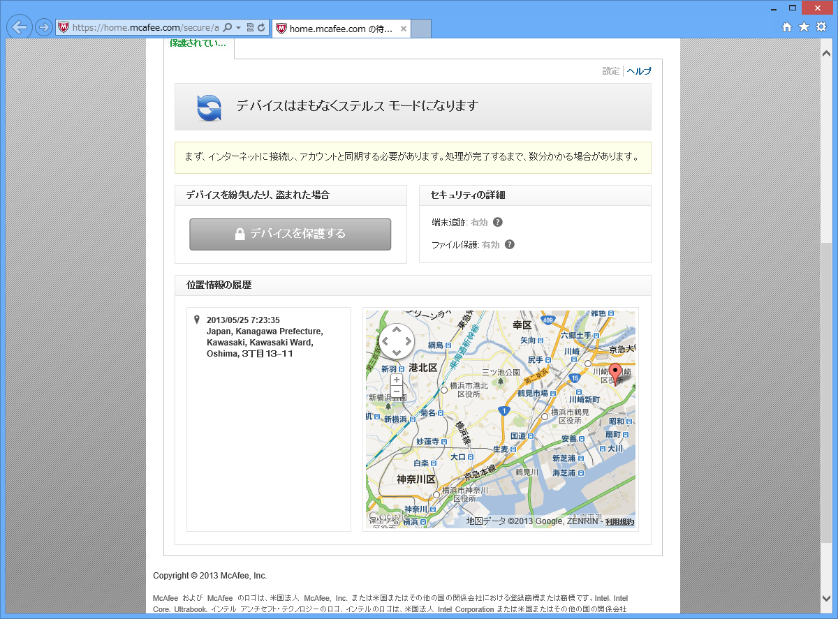 同期が完了するとアンチセフトサービスがアクティブになります。