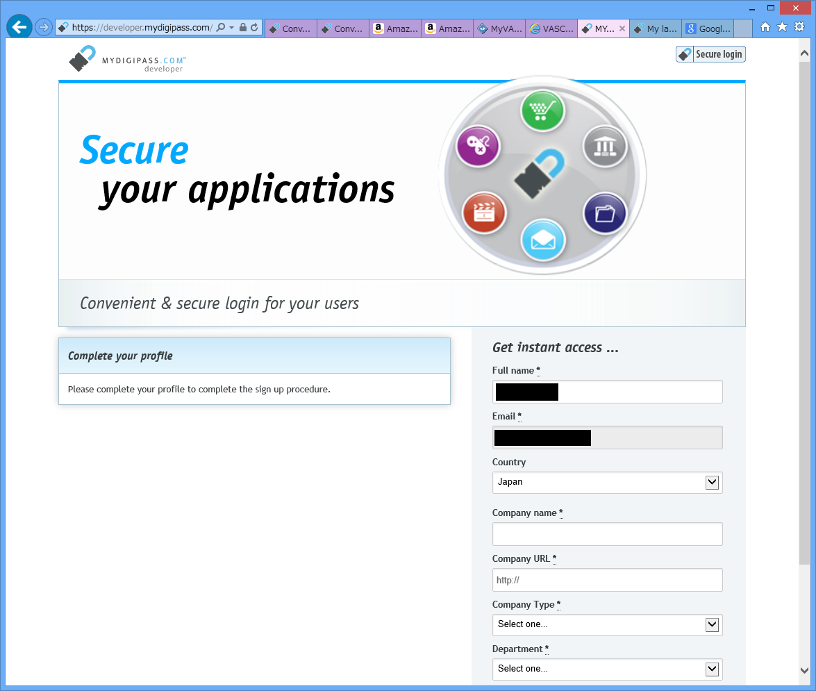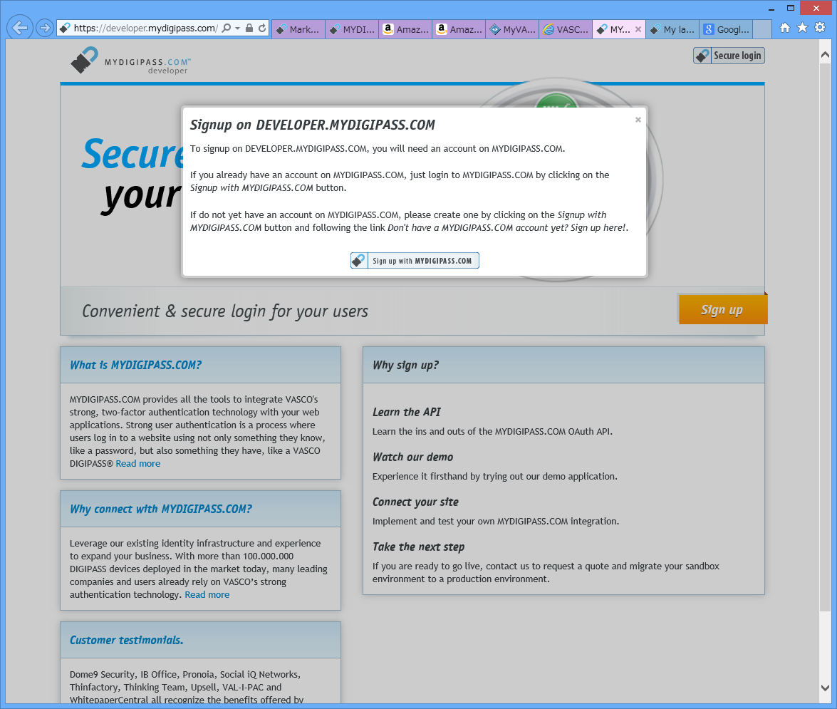 ためしに、開発者用のhttp://developer.mydigipass.com/を開いてみます。