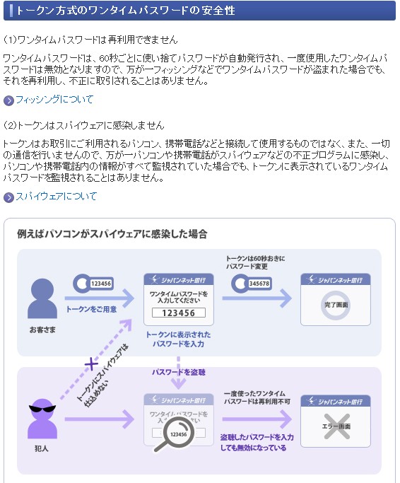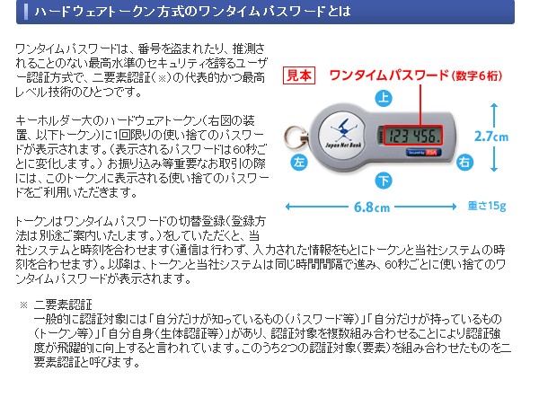 こちらは、以前からトークンによるワンタイムパスワード方式を採用していました。