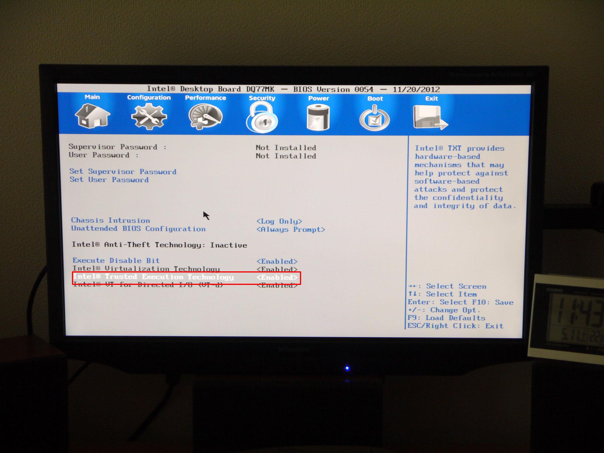ここからはインテル® トラステッド・エグゼキューション・テクノロジー(以下TXT)の導入をしてみましょう。