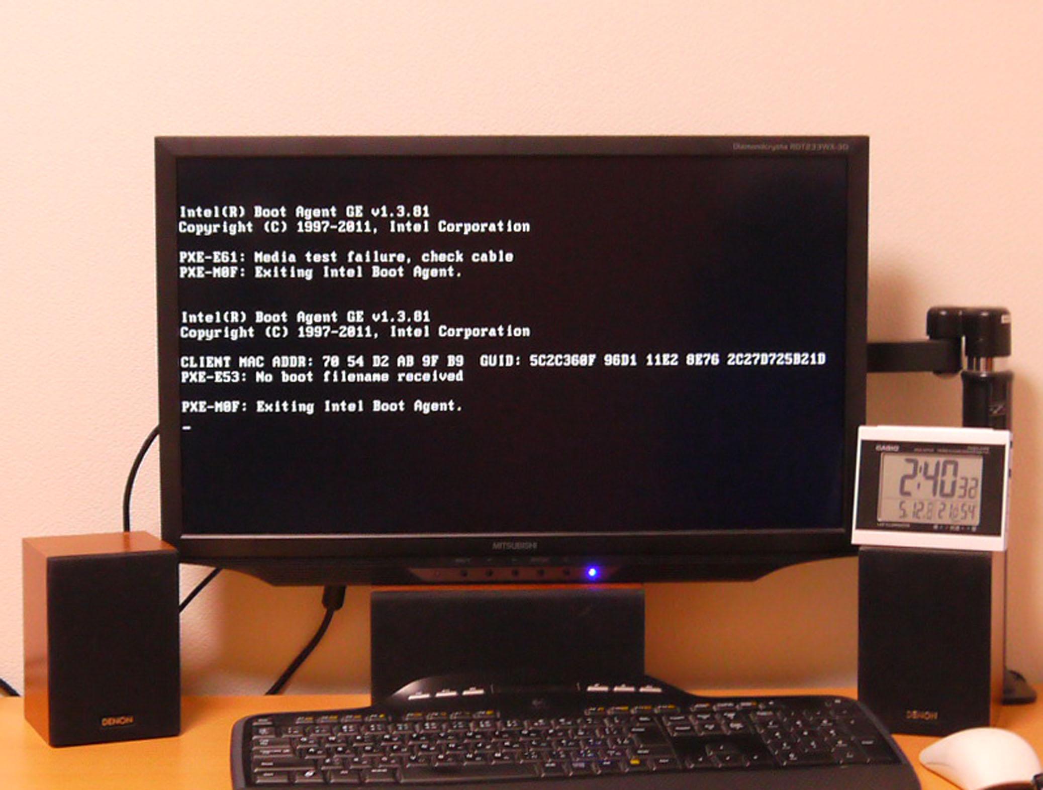 Intel Boot Agent GEが起動してOSの起動はやはり出来ず!