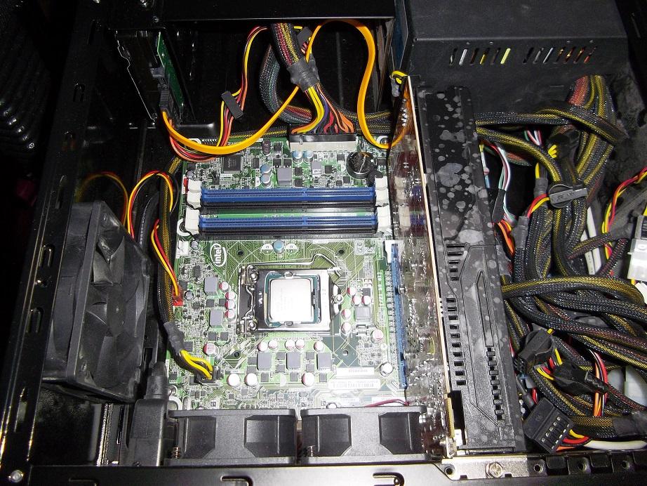内部はこのような感じです。(VGAカードにアセトンが散ってしまったので、シミだらけですが...)