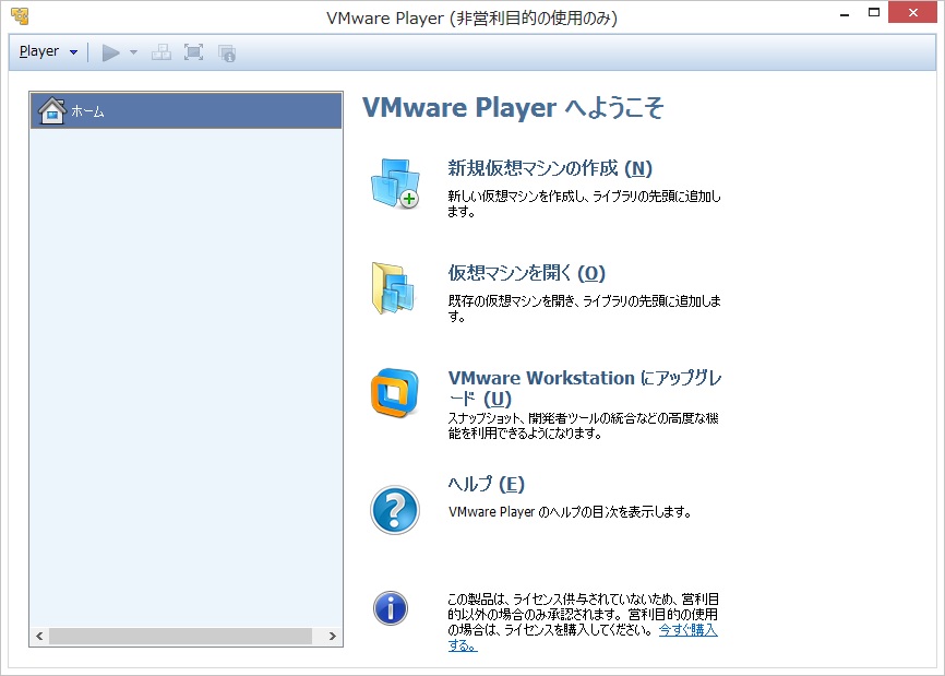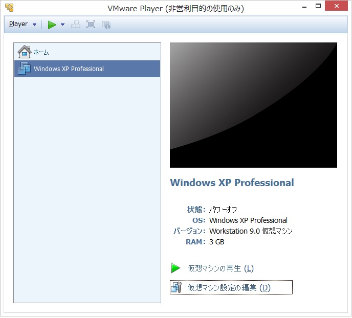 インストールが終わったら、VMare Playerを起動し仮想PCを選択するだけです。