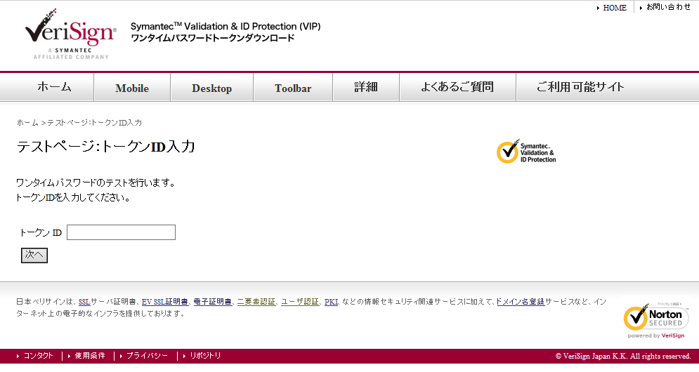 完了すると右下にトークンIDとワンタイムパスワードが表示されます。