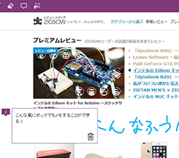 Windows 10 には、Web エクスペリエンスの向上を目指して開発された、新しいブラウザーである Microsoft Edge が搭載されます。Webページに直接メモを手書きするかキーボード入力して他の人と共有したり、無駄のないすっきりとしたレイアウトでオンライン記事を読んだり、お気に入りのコンテンツを後で読めるように保存したりすることができます。さらに Cortana3 を有効にすると、現在のページを表示したまま、予約をしたりレビュー記事を読んだりするなど、必要な操作をすぐに行うことができます。